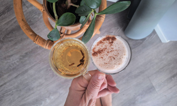 En annen del av min morgen-rutine, er oil-pulling, varmet vann med sitron og nellik, etterfulgt av en varme drikke med matcha, chai eller kakao <3