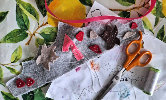Siden niesen min er høst-barn, laget jeg en høst-inspirert krone, med fallende blader, sopp og rognebær. Her setter bare fantasien grenser, så kronen kan pyntes med akkurat det som passer bursdagsbanet selv.