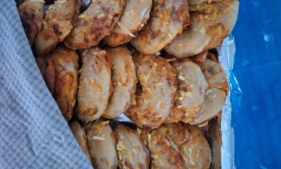 Pensle pannen med litt kokosolje. Ha i deigen.