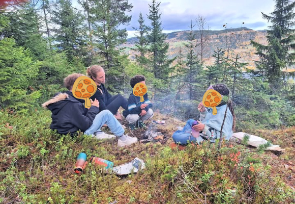 Jeg bakte veganske pizza-horn, og hadde med termoser med kakao og vispet krem (brukte Gryr-fløten).