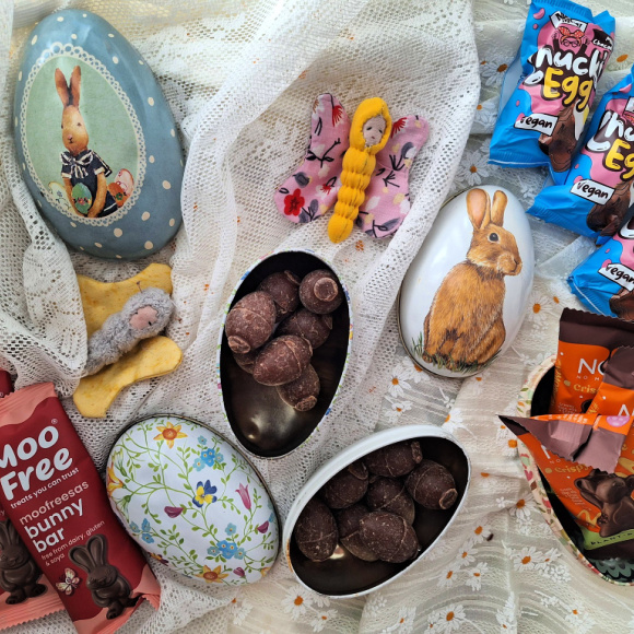 I år har jeg bestilt alt hos Diggbox. De har så mye vegansk godteri som ikke finnes i butikker. Jeg har gått for sjokolade, for det er det de liker best.